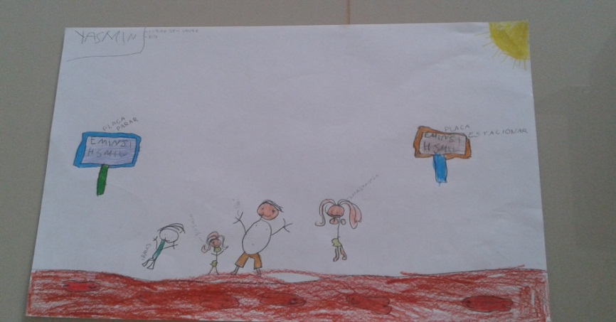 (06) Aluna (C): O sol tinha umas placas de pare e de estacionar onde a gente deixou estacionado o carro.