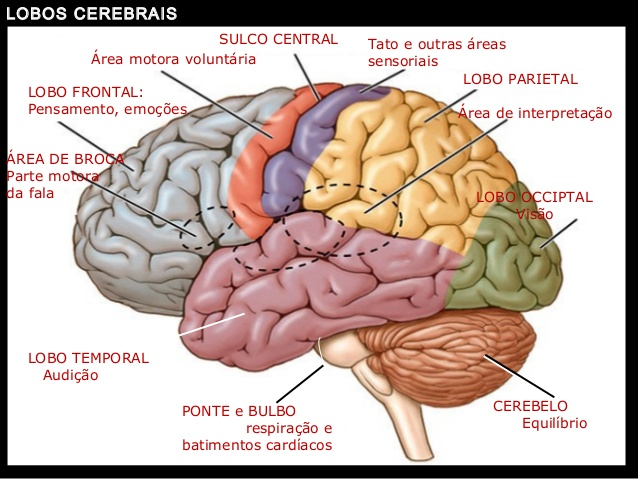 O cérebro é o principal órgão no processo de aprendizagem e é dividido em áreas como podemos ver pela imagem a seguir:
