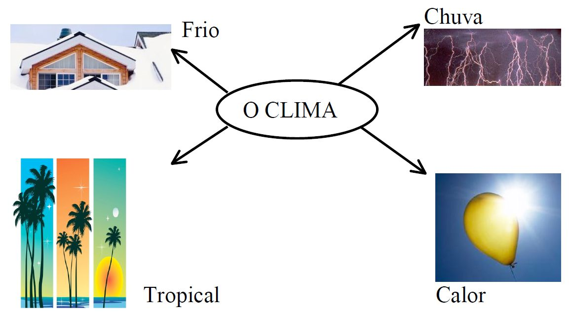 Segundo: “Buscar, dentro do primeiro grupo, um conceito que inclua o resto (por ex. o clima) e situar abaixo outros conceitos gerais, conectados com flechas. Escrever sobre cada flecha a ideia que relaciona cada par de conceitos…”