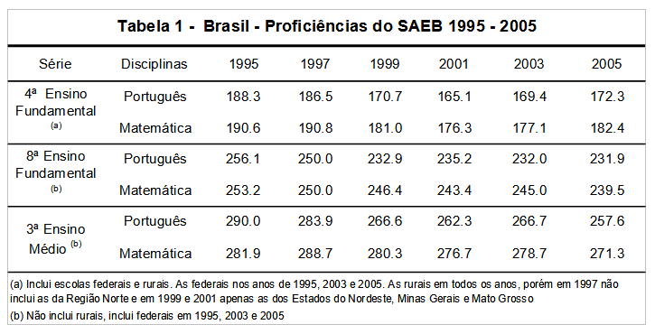 Desta forma, reportando-nos aos processos educacionais de séculos anteriores, percebemos que ainda hoje vivenciamos práticas pedagógicas de leitura restrita e ilimitada, engessada em propostas pouco significativas aos alunos e, por conta disso, explica-se grande número de evasão. Ou seja, a escola real contrapõe à escola ideal – da qual o aluno se torne um cidadão crítico, livre, ressignificador de suas práticas. A exemplo disso, o Sistema Nacional de Avaliação da Educação Básica (SAEB) realizou uma pesquisa junto ao Instituto Nacional de Estudos e Pesquisas Nacionais Anísio Teixeira – INEP, ligado ao Ministério da Educação, referente ao desempenho dos alunos em português, no período de 1995-2005, sinalizando a deficiência das estratégias pedagógicas para o ensino e aprendizagem da leitura.