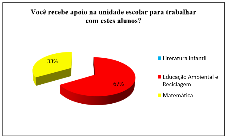 Logo quando perguntados se os professores recebem apoio para trabalhar com alunos portadores de necessidades especiais. Como se analisa no gráfico 80% dos entrevistados respondeu que sim, 20% responderam que às vezes e nenhum respondeu que não recebe nenhum tipo de apoio da unidade escolar.