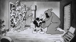 No entanto em Mickey Mouse – The Haunted House – 1929 (YouTube), vemos o personagem Mickey adentrando uma casa mal-assombrada em meio a uma tempestade, lá ele se depara com a morte personificada com um manto com o rosto escuro, sendo que em certo ponto demonstra sua figura cadavérica. Após tocar piano diversas caveiras aparecem e dançam juntamente com essa figura, interagindo com a música. Outra animação é La Danza Macabra: The Skeleton Dance – 1929 (Youtube), demostrando um cemitério assombrado com seus animais característicos e em seguida surge esqueletos dançantes.