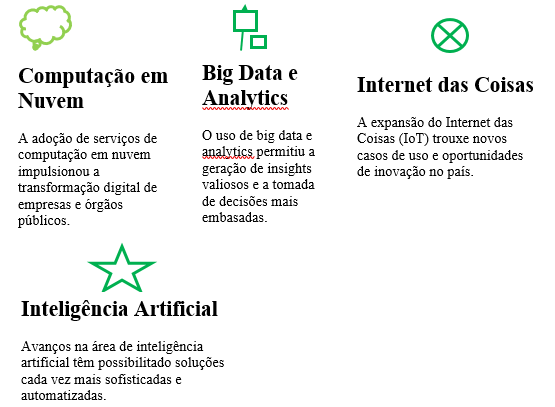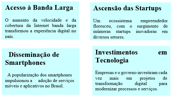 O desenvolvimento das tecnologias digitais no Brasil tem uma história fascinante, marcada por avanços, desafios e inovações que moldaram a transformação digital do país. A transformação digital no Brasil tem sido notável nas últimas décadas, impactando profundamente diversos setores da sociedade e da economia. Desde a popularização da internet até o surgimento de tecnologias disruptivas como a inteligência artificial, o país tem acompanhado de perto essa evolução, apresentando avanços significativos desafios a serem superados. A transformação digital no Brasil tem sido notável nas últimas décadas, impactando profundamente diversos setores da sociedade e da economia. Desde a popularização da internet até o surgimento de tecnologias disruptivas como a inteligência artificial, o país tem acompanhado de perto essa evolução, apresentando avanços significativos e desafios a serem superados. Fatores que Impulsionaram a Evolução Digital no Brasil Popularização da Internet: O acesso à internet se tornou cada vez mais democrático, impulsionado pela expansão da infraestrutura de telecomunicações e pela queda dos preços dos dispositivos; Aumento do Poder de Compra: O crescimento da classe média e o aumento do poder de compra da população brasileira fomentaram a demanda por produtos e serviços digitais; Incentivos Governamentais: Programas governamentais como o Minha Casa, Minha Vida e o Brasil Conectado contribuíram para a expansão do acesso à internet em áreas remotas e de baixa renda; Empreendedorismo Digital: O surgimento de startups e empresas digitais inovadoras impulsionou a criação de novas soluções e modelos de negócios; Pandemia de COVID-19: A pandemia acelerou a digitalização de diversos setores, impulsionando o trabalho remoto, o e-commerce e os serviços digitais. Um panorama das Principais Tendências e Impactos podendo citar: E-commerce - O comércio eletrônico cresceu exponencialmente, oferecendo maior comodidade e variedade de produtos aos consumidores; Fintechs - Empresas de tecnologia financeira revolucionaram o setor bancário, oferecendo serviços mais personalizados e eficientes; Internet das Coisas (IoT) - A IoT está transformando a forma como interagimos com os objetos ao nosso redor, com aplicações em diversas áreas, como indústria, saúde e agricultura; Inteligência Artificial - A IA está sendo aplicada em diversas áreas, como diagnóstico médico, atendimento ao cliente e automação de processos; Realidade Virtual e Aumentada - Essas tecnologias estão sendo utilizadas em diversas áreas, como educação, entretenimento e treinamento profissional. A evolução gera Desafios e Oportunidades, tais como: Desigualdade Digital: A desigualdade digital ainda é um grande desafio, com diferenças significativas no acesso à internet e à tecnologia entre as diferentes regiões do país; Segurança Cibernética: Com o aumento da digitalização, os riscos de ataques cibernéticos também cresceram, exigindo investimentos em segurança da informação; Educação: É fundamental investir em educação para preparar a força de trabalho para os desafios da era digital; Inovação: O Brasil precisa fomentar a inovação e o desenvolvimento de novas tecnologias para se manter competitivo no cenário global. O futuro da tecnologia digital no Brasil é promissor, com diversas oportunidades para o crescimento econômico e o desenvolvimento social. A contínua expansão da infraestrutura de telecomunicações, o aumento dos investimentos em pesquisa e desenvolvimento e a crescente demanda por soluções digitais são fatores que impulsionarão essa evolução. O Brasil está se consolidando como um player global na economia digital, com um ecossistema de inovação cada vez mais robusto e promissor.