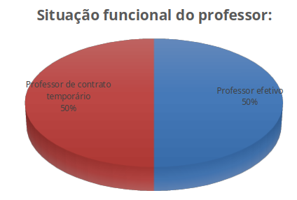 Verificamos que cinquenta por cento são professores efetivo, e os outros cinquenta são professores contratados.