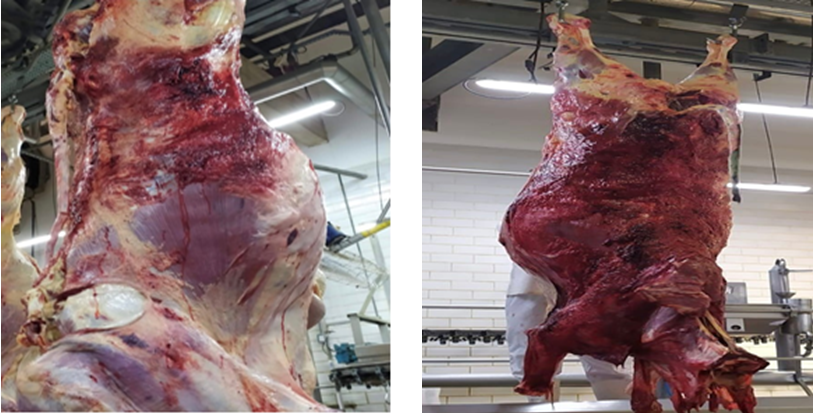 Após a análise das partes teóricas citadas, observa-se, de acordo com os autores mencionados (Leite, 2020; Santos, 2023; De Almeida et al., 2024), e através de conversas informais sobre os prejuízos de um manejo inadequado, que a qualidade da carcaça vai além do bem-estar animal e do acompanhamento de todo o manejo, desde o gado no pasto até a chegada do produto final à mesa do consumidor. Assim, nota-se prejuízos na carcaça, conforme evidenciado nas fotos apresentadas a seguir.