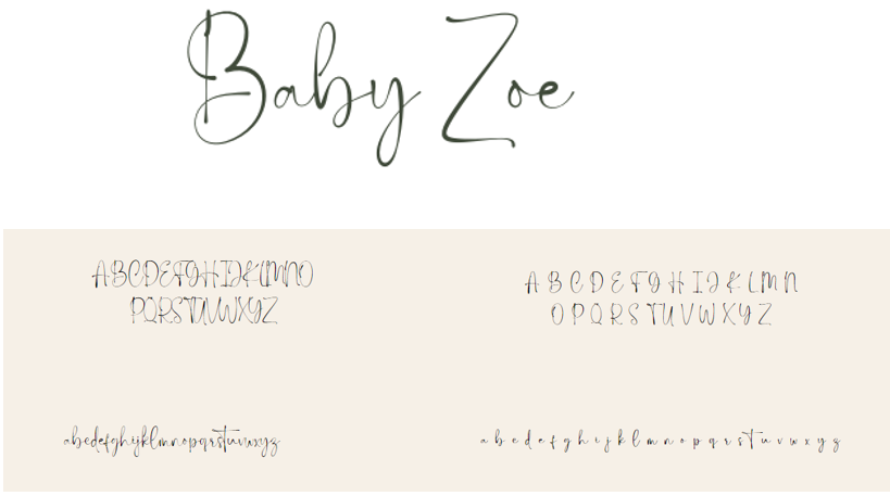 No logotipo temos a apresentação do nome da marca “Baby Zoe”, a tipografia escolhida foi a Blastine, trazendo uma letra moderna e atraente.