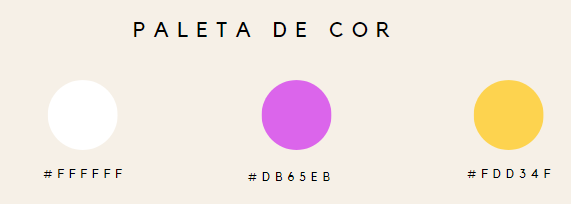 Na paleta de cores teremos o arco-íris ao fundo com o degrade de amarelo, roxo e branco que transmitem sensações espiritualidade, energia, calor, alegria, otimismo, ternura, pureza e limpeza.