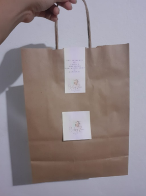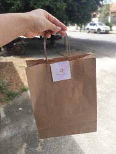 A papelaria foi pensada para ter o melhor encaixe com a embalagem em que são entregues as vendas de produtos. A seguir imagens da cliente com o produto em uso.