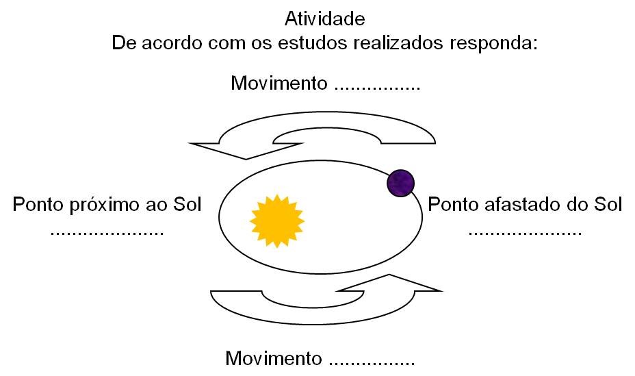 A coleta de dados referente ao aprendizado dos educandos foi por meio da aplicação de uma atividade, onde os alunos indicaram o movimento acelerado e retardado do planeta e os pontos de periélio e afélio. A atividade foi desenvolvida com estudantes do 6º ano do Ensino Fundamental da escola Municipal Jane Pereira Lopes, no município de Matupá – MT.