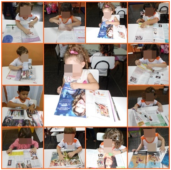 As fotografias utilizadas foram tiradas no nosso local de trabalho, como não houve uma iniciativa para solicitar autorização de seu uso por parte dos pais das crianças, foram colocadas uma tarja para não haver identificação dos alunos, nem da escola, por motivos éticos.